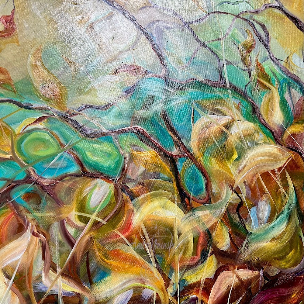 As I painted, a sense of calm took over as each seed head took form & bare winter branches stretched their way across the painting. I came back to the thoughts of how, if you look closely, you can find beauty in the tiniest, simplest things. Just looking at the abundance & variety of Nature brings such a sense of peace.